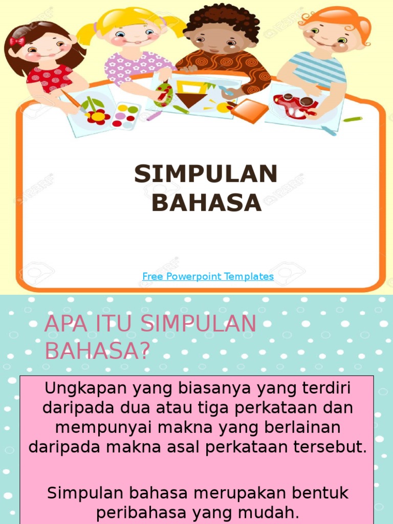 Murid-murid mari kita belajar. Apa sih yang dimaksud dengan kata atau istilah simpulan. Biasanya simpulan bahasa terdiri daripada dua patah kata yang membawa maksud yang berlainan.